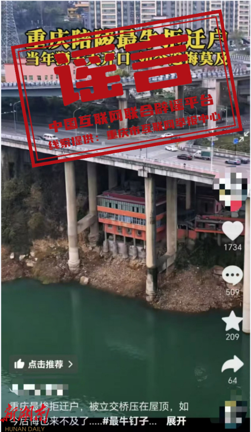 谣言:重庆“最惨拆迁户”,被立交桥压在屋顶?
