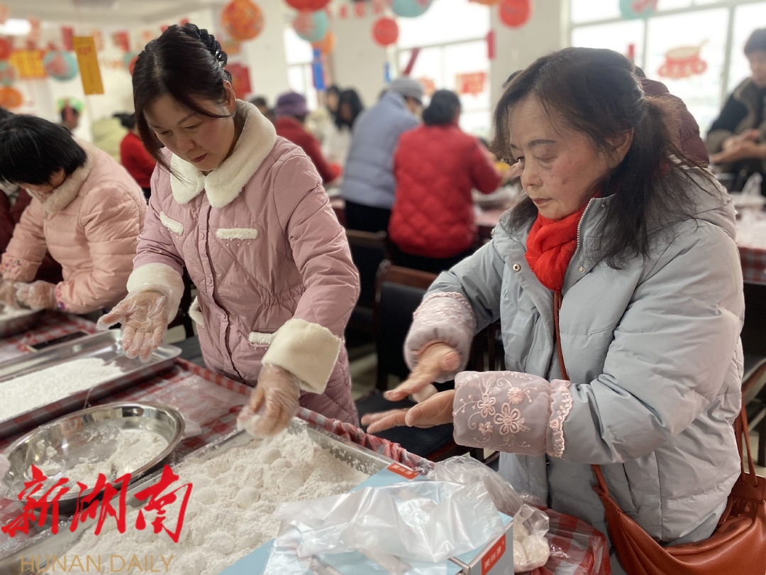 在制作汤圆的区域,居民们在工作人员的指导下,亲手制作出一粒粒圆润饱满的汤圆。大家一边制作,一边交流着元宵节的传统习俗,氛围温馨融洽。看着自己的劳动成果,居民们脸上洋溢着幸福的笑容。