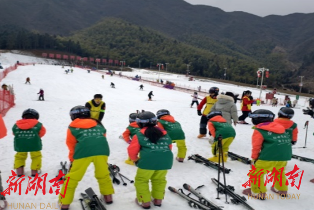 湖南日报·新湖南客户端2月12日讯(通讯员 刘金鹏 毛译)2月10日,新化县紫鹊界滑雪乐园人头攒动,来自附近学校的师生们汇聚于此,开展滑雪研学活动,体验冰雪运动带来的欢乐。