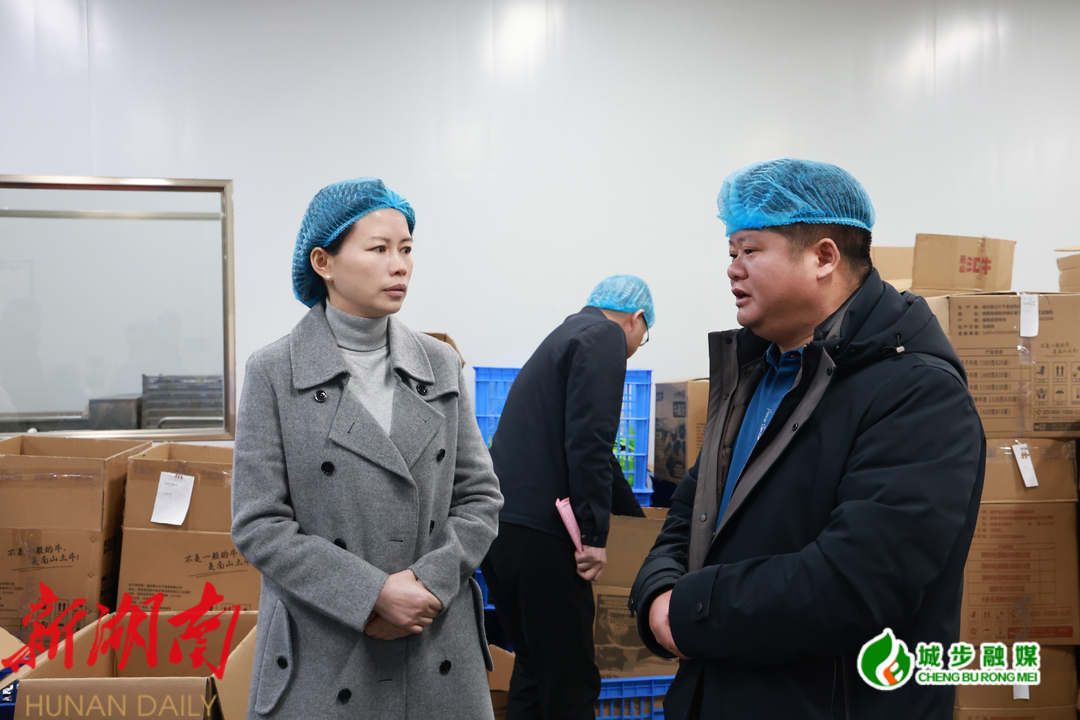 图为县委副书记、县长王慧敏调研城步南山汇牛食品有限公司安全生产工作