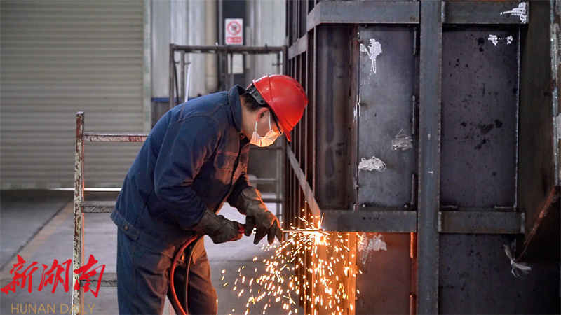 机器轰鸣、焊花四溅。在岳阳联创热能设备生产车间,工人们争分夺秒、干劲十足,处处洋溢着奋斗争先的气息,一个个节能环保的巨型金属窑炉设备即将从他们手中诞生。