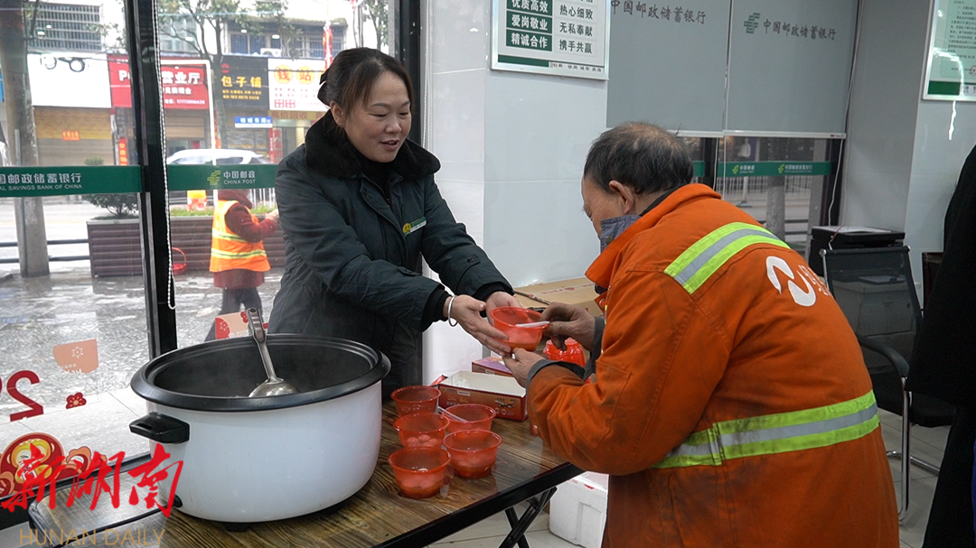 洞口邮政:情系环卫工人,一碗汤圆暖人心