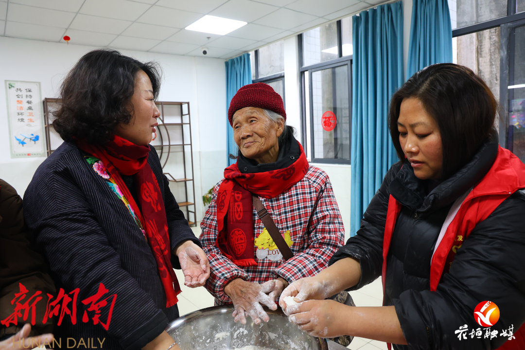 活动当天,志愿者们带着精心准备的围巾、水果等慰问品抵达福利院。志愿者为老人们戴上围巾,并与老人一起包元宵、包饺子。大家分工明确,揉面、调馅、包制,90岁高龄的孔玉英老人也加入其中,传授着包汤圆的技巧。现场欢声笑语不断,热闹非凡。