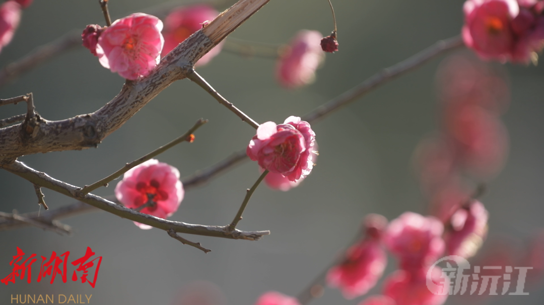 春日红梅傲然绽放 城市公园迎赏花热潮