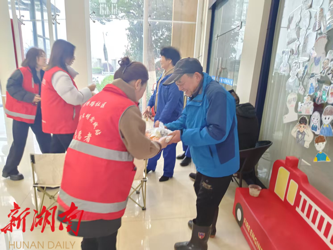 通过网格划分,将社区工作人员和孩子们分成不同小组,带着煮好的汤圆,依照网格分布,依次走到小区环卫工人、保安叔叔身边,双手递上汤圆,真诚地表达感谢。