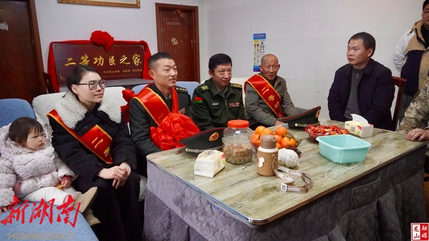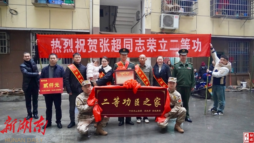 龙山县融媒体中心2月12日讯(记者 王秋月)2月12日,县委常委、县人武部政委刘建飞带领县退役军人事务局一行为荣立二等功的现役军人张超及家属送去“二等功臣之家”牌匾、立功喜报。