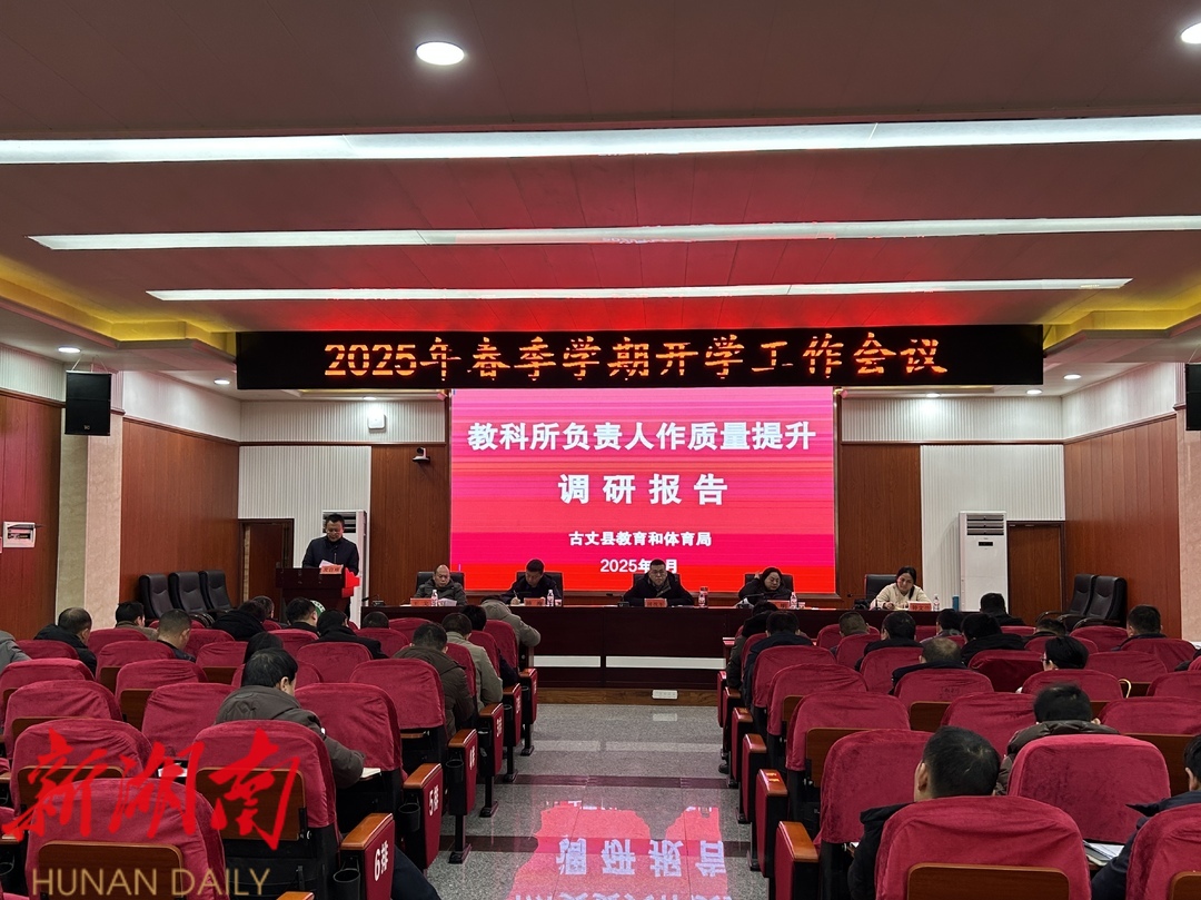 新湖南客户端2月13日讯(记者 周湫婧 通讯员 向蓉)新春伊始,开学在即。2月12—2月13日,湘西土家族苗族自治州古丈县教体局召开2025 年春季开学工作会议,为新学期教育教学工作谋篇布局。县教体局党组成员、班子成员及县内各级各类校(园)负责人参加会议。