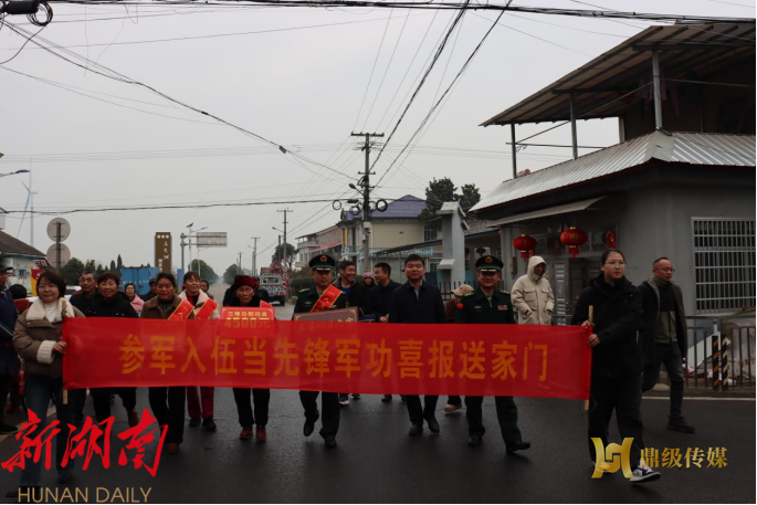 湖南日报·新湖南客户端 2月13日讯(通讯员 高晓彤)2月12日上午,市武警支队、区人武部、区退役军人事务局、十美堂镇等单位联合组成慰问组,在十美堂镇举行庄重热烈的三等功喜报送达仪式,为荣立三等功的现役军人郭锐同志家庭送去立功喜报。