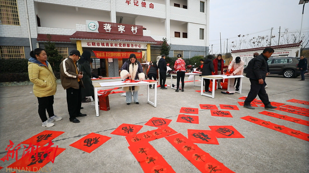除了精彩的文艺表演,现场还精心设置了 “写春联送祝福”活动。书法志愿者们大显身手,为村民展示了福字的一百余种写法,并根据村民们挑选的对联内容,用行书、草书、隶书等多种字体挥毫泼墨。与此同时,打糍粑、炸豆角酥等趣味活动也吸引了众多村民参与。大家一边参与活动,一边共话家常,邻里之间的关系愈发亲近,浓浓的年味弥漫在整个广场。