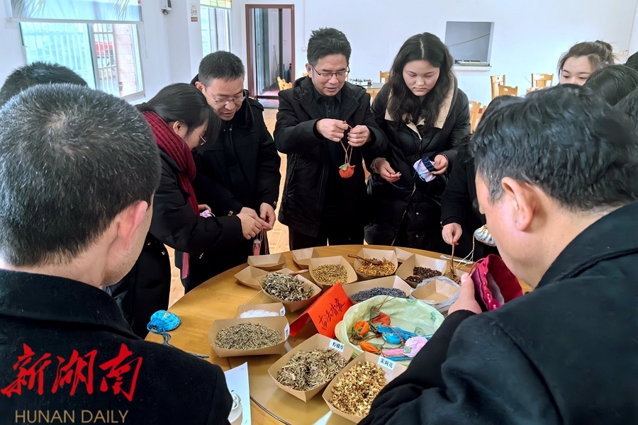 活动现场众人选取自己喜爱的香料制作香囊