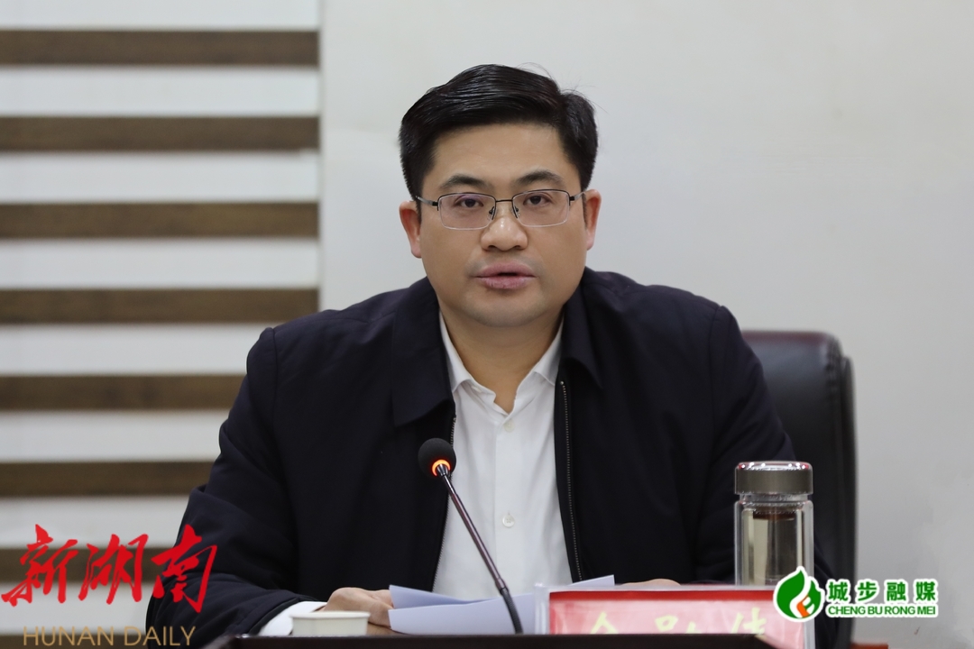 图为邵阳市人民政府党组成员、副市长、城步县委书记余勋伟在会上讲话