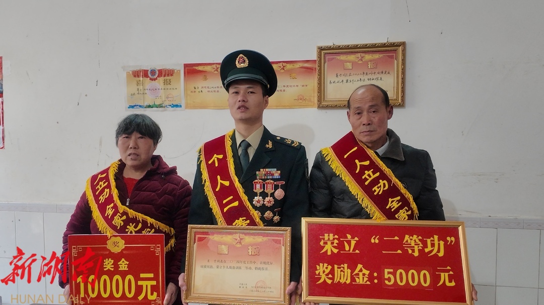 新洞口客户端2月14日讯(记者:邓贝乐 通讯员:周后明) 2月14日上午,伴随着喜庆的铜锣声,县人武部、县退役军人事务局、花古街道田家村村委会相关负责人一行为荣立“二等功”的现役军人肖于及其家人送去喜报。县人武部副部长李亮参加活动。