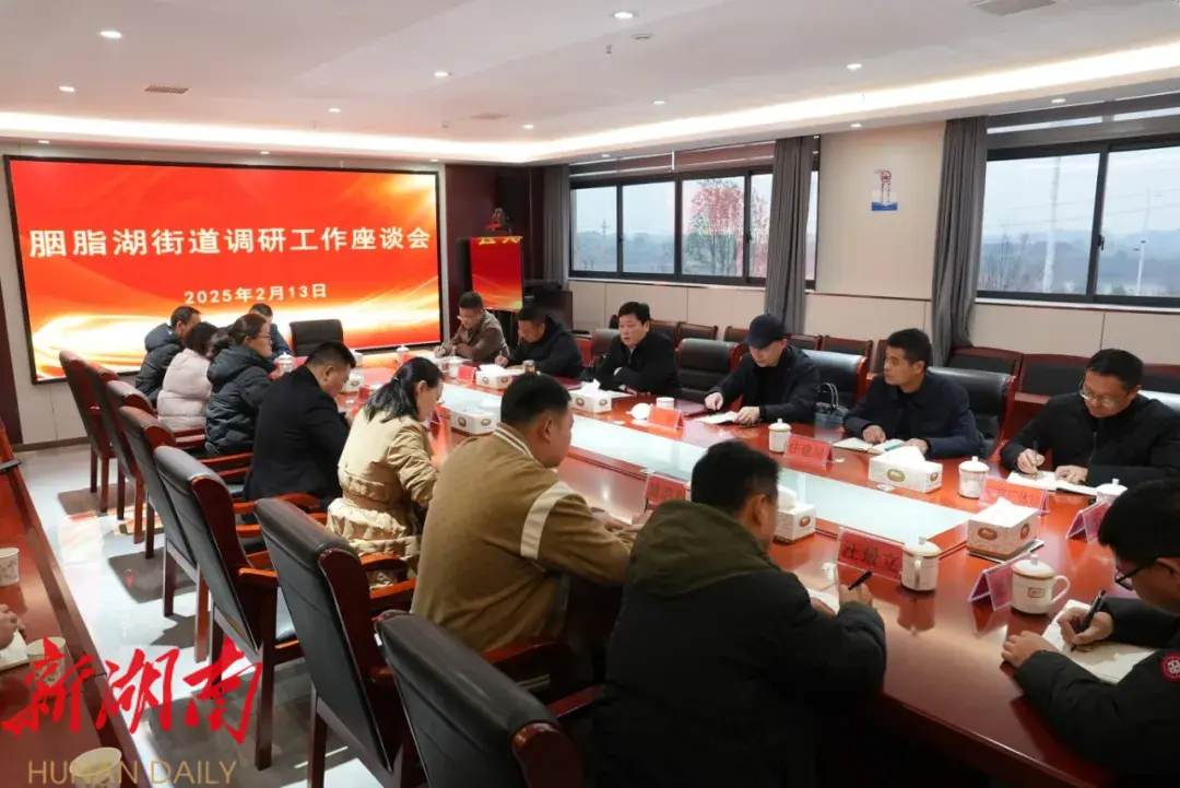 随后,杨智勇主持召开座谈会,听取胭脂湖街道工作情况汇报,对街道工作给予了高度肯定。杨智勇要求,胭脂湖街道要按照市委提出的“均衡发展、高质高效、奋勇争先、全面出彩”总体工作要求,扎实推进各项工作落实。要深度挖掘“四个优势”,把街道的区位优势、基础优势、政策优势、品牌优势发挥出来,展示胭脂湖街道的地位;要全力打造“四个桥头堡”,将街道建成城市建设、区域融合、产业发展、乡村振兴的桥头堡,展示胭脂湖街道的形象;要着力突出“四个要点”,坚守发展重点,突破稳定难点,打造治理亮点,创造文旅热点,展现胭脂湖街道的责任;要扎实抓好“四项工作”,即党建、现代农业产业化发展、项目建设、全域旅游等方面工作,展示胭脂湖街道高质量发展的担当。