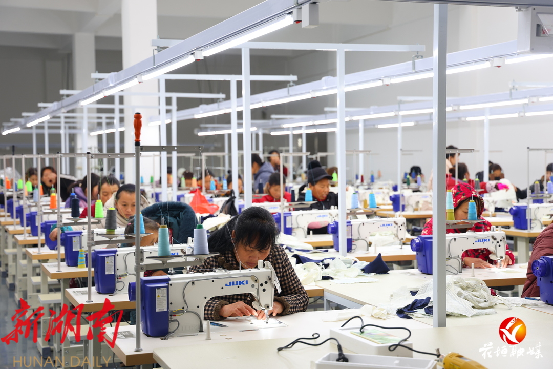 2月13日,记者走进花垣县双龙镇十八洞片区服装厂车间,一台台小型生产设备整齐排列,“哒哒哒、哒哒哒”的缝纫机声此起彼伏,百余名村民拥有了自己的“新工作”,化身“上班族”,正在生产线上全神贯注地忙碌着。