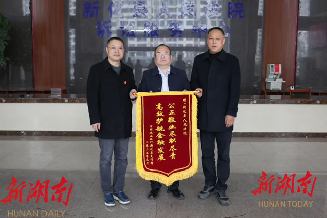 当天,农业银行新化支行向新化法院赠送了锦旗,感谢新化法院在化解金融纠纷方面所做的贡献。