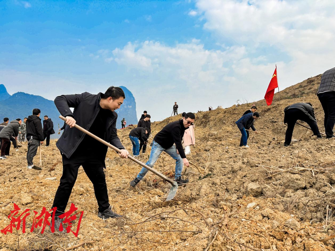 在宁远县湾井镇下寨岗村植树点,该镇负责人带领党员干部、群众代表一起分工协作、紧密配合,挥锹铲土、栽种扶苗、培土浇水,一棵棵彰显生机活力的树苗与一派热火朝天的劳动景象构成了一道亮丽的风景线。经过一番劳作,300余棵树苗便挺立在春风中错落有致,为大地增添了一抹新绿,也为新的一年种下新的希望。