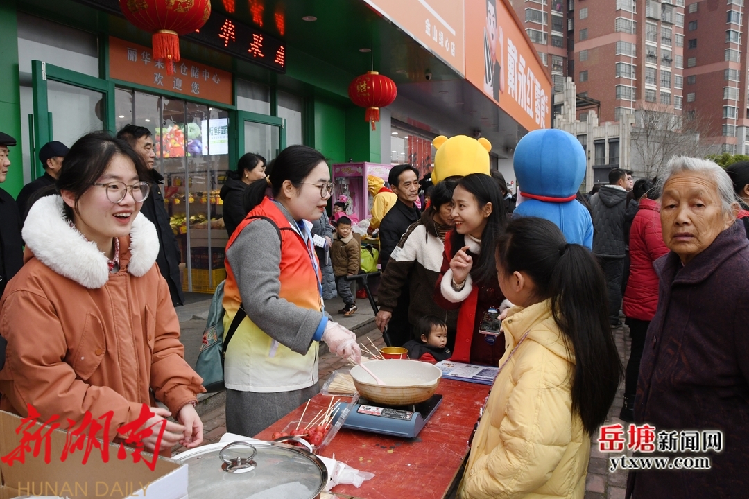 除了舞狮,花鼓戏、小品“反诈骗”、表演“何必西天万里遥”等一个个节目也精彩亮相,现场欢声笑语不断。演员们以饱满的热情将节日的喜悦和浓浓的祝福传递给每一位群众。现场,志愿者们还推出了汤圆、冰糖葫芦制作和品尝,义诊、义剪、法律咨询、消费者权益保护教育宣传、垃圾分类宣传、就业指导、免费贴膜、游戏互动及团圆时光留影等,吸引了众多居民参与 。工作人员向居民发放防范非法集资宣传折页,提醒群众提高自我防范意识。
