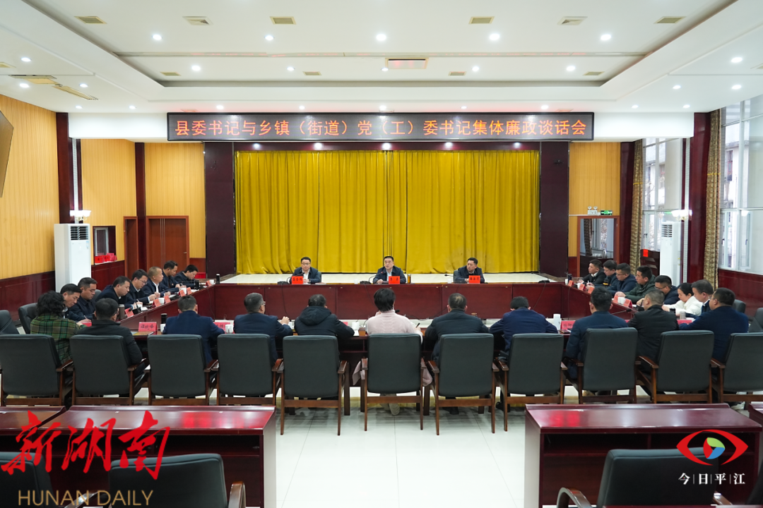 2月12日,市人大常委会副主任、县委书记李勇对全县乡镇(街道)党(工)委书记开展集体廉政谈话。他强调,要深入学习领会习近平总书记关于全面从严治党的重要论述,认真贯彻落实中央、省市相关会议精神,倍加珍惜组织的厚爱和重托,珍惜人民赋予的权力和责任,把心思和精力集中到工作上,拼搏到事业上,努力干出无愧于时代、无愧于党和人民的业绩,为平江挺进全省县域经济十强作出新的更大贡献。