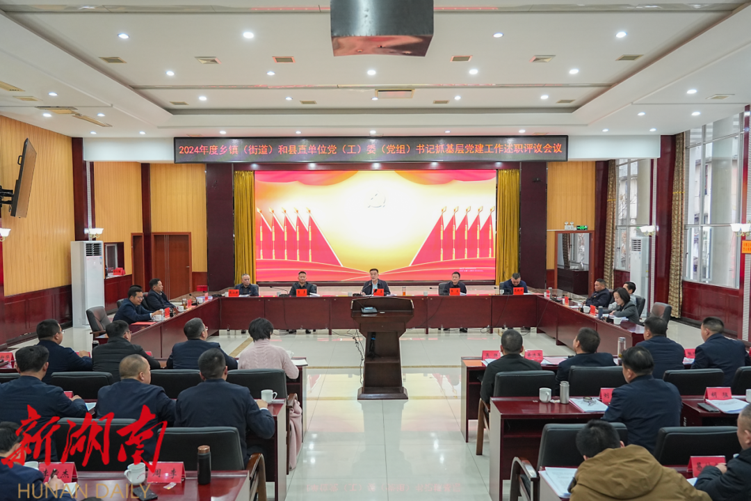2月12日,市人大常委会副主任、县委书记李勇主持召开平江县2024年度乡镇(街道)和县直单位党(工)委(党组)书记抓基层党建工作述职评议会议,强调要始终高举习近平新时代中国特色社会主义思想伟大旗帜,深入学习贯彻党的二十大和二十届三中全会精神,认真落实新时代党的建设总要求和党的组织路线,凝心聚力、担责履责、奋发作为,以高质量党建引领高质量发展。