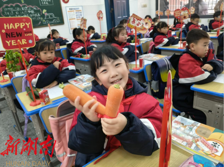 资阳区马良学校学生抽到“胡萝卜”真开心
