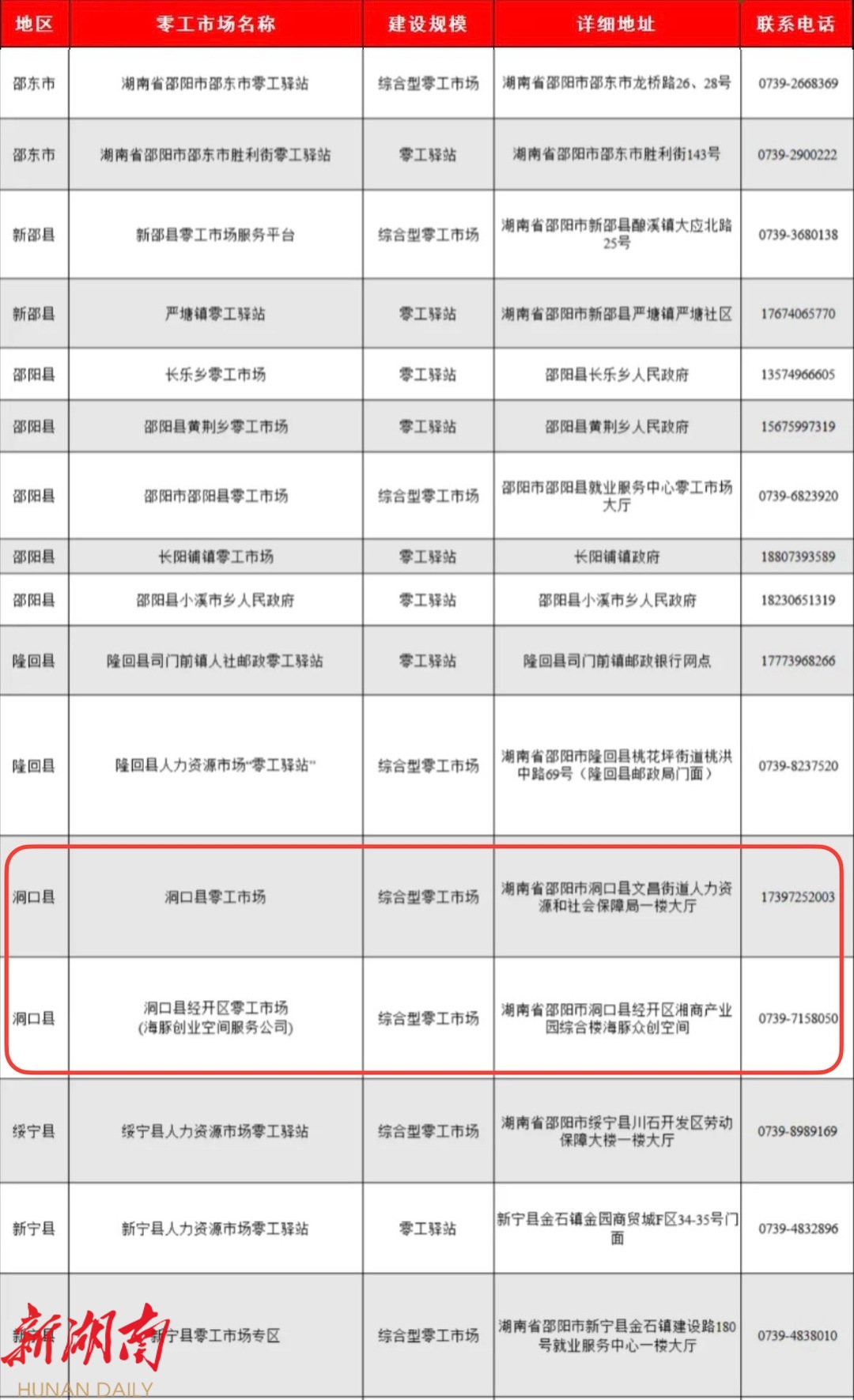 新洞口客户端2月16日讯(记者:欧阳沐娟) 近日,省人社厅公布湖南省零工市场(驿站)名录,洞口县零工市场、洞口县经开区零工市场(海豚创业空间服务公司)两家零工市场(驿站)上榜。