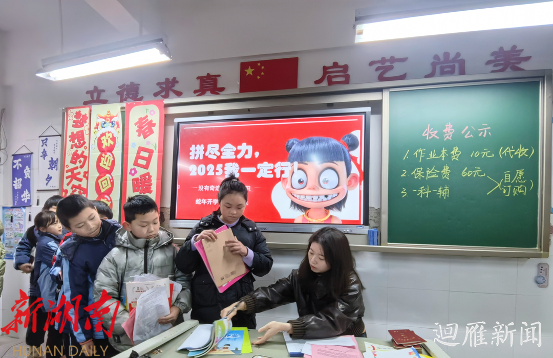 一进校园,富有特色的非遗剪纸和脸谱,浓浓的传统文化氛围瞬间被拉满,创意非凡的画蛇添福图和新春对联,藏着学校对孩子们新学期满满的美好祝福。 家长和孩子们纷纷驻足打卡拍照,拿着新学期的祝福卡,信心满满地奔赴新学期,开启新征程。