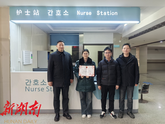 武陵源区融媒体中心2月11日讯(通讯员 邓灵仙)2月10日,张家界市武陵源区委政法委相关负责人来到区人民医院看望慰问紧急救助患病游客的护士邓茜,并向她颁发“见义勇为行为”确认证书,表彰她救死扶伤的先进事迹。