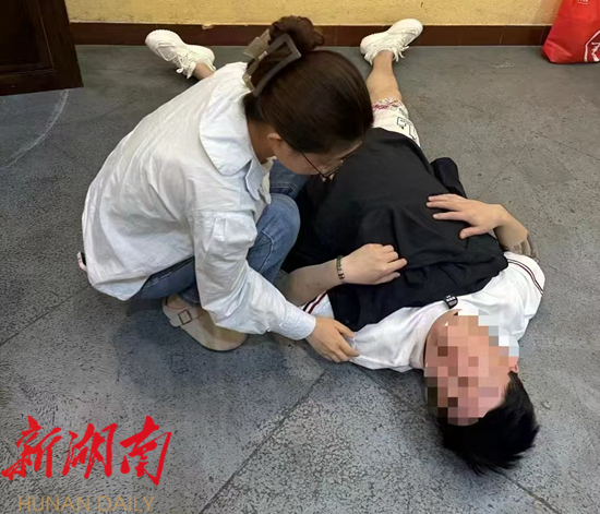 时间追溯到2024年5月12日,一名来自上海的游客在张家界市武陵源区某餐厅准备就餐时,突发疾病晕倒不省人事。情急之下,正在邻桌用餐的护士邓茜闻讯后火速上前。只见这名患病男子躺在地上,嘴唇发绀、脸色苍白,呼喊时也根本没有任何意识,呼吸和颈动脉搏动相当微弱。她迅速 跪地对其实施心肺复苏抢救,大约2分钟后,这名患病男子逐渐恢复意识,随后被赶来的“120”急救人员送往医院做进一步治疗。当晚,这名患病男子康复出院。