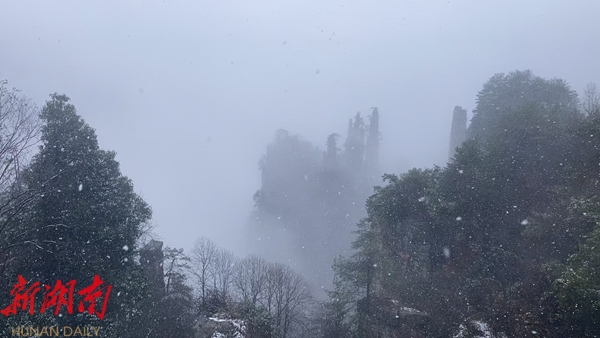 张家界武陵源景区迎来降雪 景色美如画