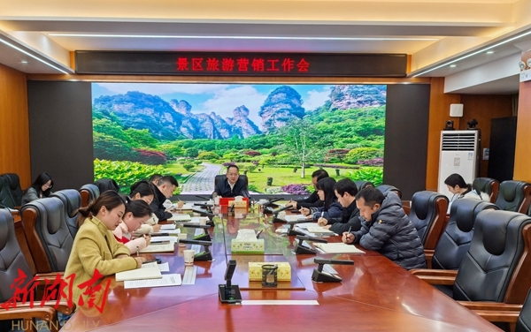 武陵源区融媒体中心2月12日讯(通讯员 陈城 张露)为全面落实市委“12345”高质量发展思路、深化“三争四抓六重点”工作举措、加快创建全国首批世界级旅游景区,近日,武陵源区委书记,张管局党委书记张龚主持召开张管局景区旅游营销工作会议,听取景区全年营销方案及第一季度营销方案汇报,安排部署下一步工作。张管局党委副书记、局长张冲,张管局党委委员、副局长毛坚坚参加会议。