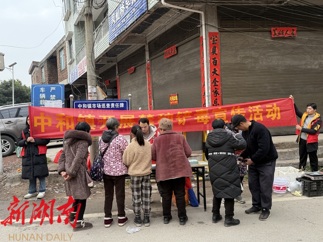 湖南日报·新湖南客户端2月17日讯 (通讯员 欧阳金万) “一年之计在于春”,春季是毒品种植的高发季节,也是禁毒工作的关键节点,为扎实推进春季禁种铲毒工作,切实提升辖区群众的禁毒、禁种意识,全力巩固禁种铲毒工作成效,近日,宁远县中和镇结合赶集日,在镇集中人员流动地开展禁种铲毒宣传活动。