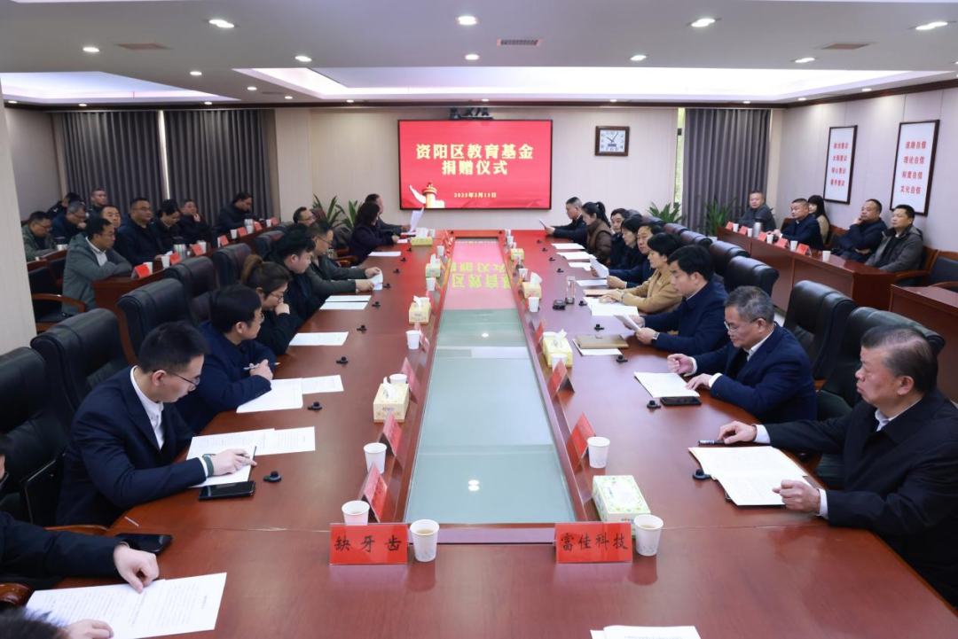 捐赠仪式上,与会人员集体观看了资阳区教育宣传片;听取了教育基金会工作情况汇报;企业代表人依次发言。