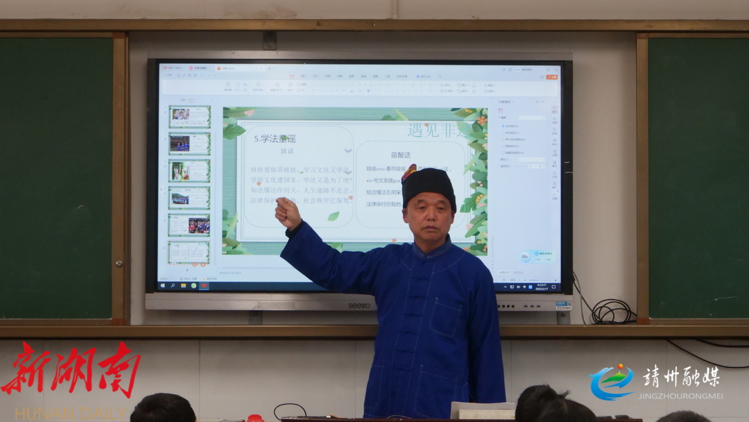 “读书郎,排日读书上学堂。读书是个头名子,上京去考状元郎……”在江东小学,苗族歌鼟指导老师龙承珍正教学生唱《读书郎》。他细致讲解韵律,分享苗族故事,学生们听得入迷。