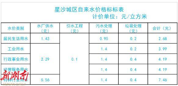 在提供高质量服务的同时,星沙水务多年来以省内最低居民水价定价2.68元/吨(水价构成:水厂供水价1.43元/吨、引水工程0.1元/吨、污水处理0.95元/吨、垃圾处理0.20/吨)为用户供水。