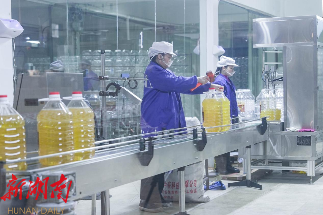 湖南誉湘龙农业科技股份有限公司的工人正在灌装食用油
