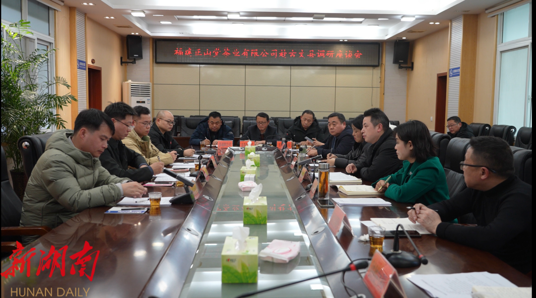 新湖南客户端2月17日讯(记者 郑湘)2月16日下午,县委书记滕朝辉与福建正山堂茶业有限公司董事长江志东一行座谈,就茶产业链合作、项目推进等事宜洽谈,共谋茶产业高质量发展新路径。副县长宋晓波,县政协副主席向春艳及县直相关部门负责人参加。