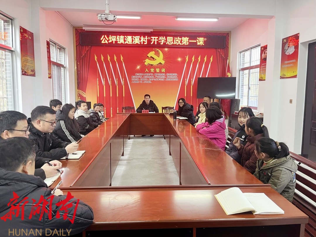 湖南日报·新湖南客户端2月18日讯(通讯员 欧阳娉 姜春兰)“我第一次在村党支部会议室听了这堂思政课,特别是镇党委书记、村党支部书记、高校老师、博士姐姐现场授课,我更有信心、更有动力了。”近日,通溪村学子向佩云在村党支部会议室听了思政课后激动表示。近年来,公坪镇党委政府坚持和加强党对思政课改革创新的全面领导,注重家校合作、校村合作,汇聚各方力量推动构建协同育人大格局。