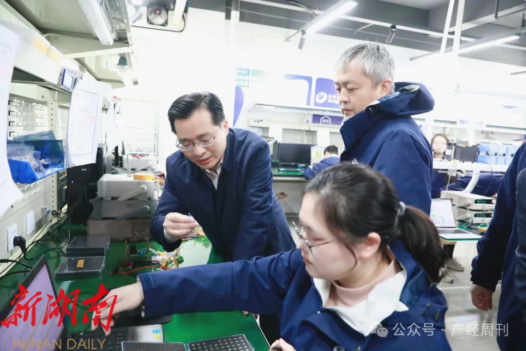 蒋红波调研湖南天羿领航科技有限公司生产线。