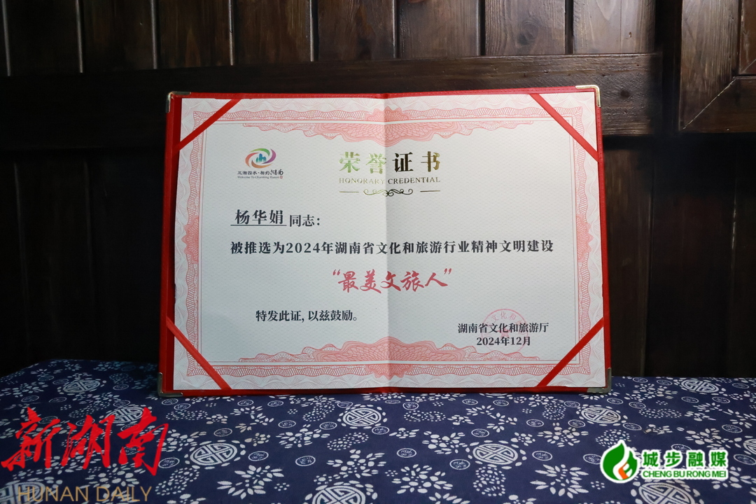 创业 8 年,杨华娟初心不改。她用行动推动城步文旅融合发展,为当地文旅事业作出卓越贡献。面对这份荣誉,杨华娟感慨道:“我很开心能获得湖南省最美文旅人这一荣誉,这既是对我个人的肯定,更是对城步苗乡千年文化底蕴的礼赞,这份荣誉属于每一位为城步文旅事业倾注心血的人。未来,我将以坚定的步伐,讲好城步故事,让世界看见南方‘呼伦贝尔’草原,听见‘中国山歌之乡’的天籁,体验‘一步一景一文化’的苗乡风情。我将始终以初心为舟,以文化为桨,在守护和传承中,驶向城步文旅更辽阔的星辰大海。”