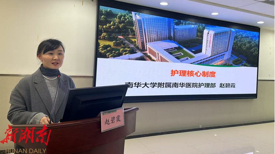 培训伊始,护理部主任兼护理教研室主任陈莉向新入学的护理研究生表示了热烈的欢迎。她深情寄语:“你们的加入为南华医院注入了新的活力,也承载着护理学科创新发展的美好希望!”随后,陈莉详细介绍了医院深厚的文化底蕴、强大的学科实力、优秀的师资队伍以及历年来在临床实践方面取得的显著成效和丰硕成果。她期望同学们在接下来的20个月临床实践中,不仅能够精进临床护理技能,更要培养科研创新思维,通过科研反思和实践不断优化护理工作。最后,她衷心祝愿大家在南华医院度过一段充实而有意义的临床实践时光,学有所成,学有所获。