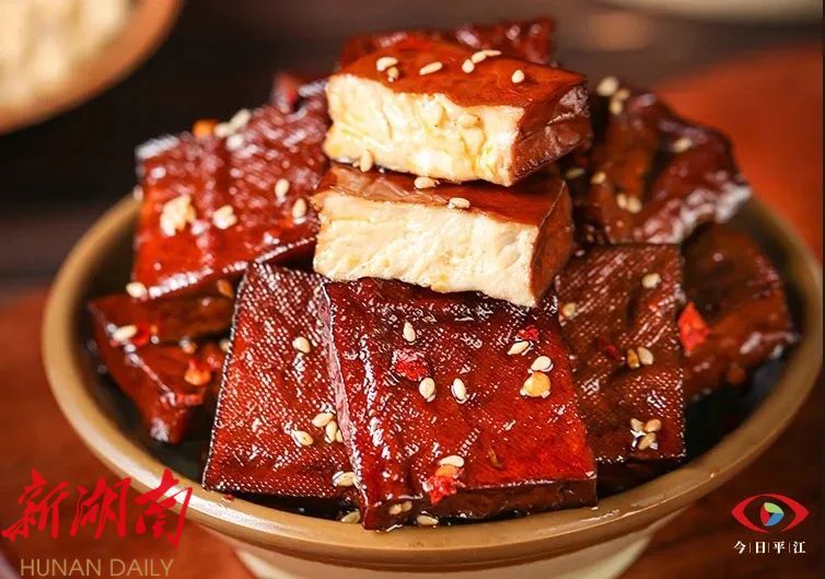 特点:平江酱干是当地传统小吃,已有数百年历史。它以优质黄豆为原料,经过浸泡、磨浆、压制、卤制等多道工序制成,口感韧而不硬,香辣入味。 现状:酱干不仅是平江人餐桌上的美味,还通过电商平台走向全国,成为“平江味道”的代表之一。 3、平江花灯戏