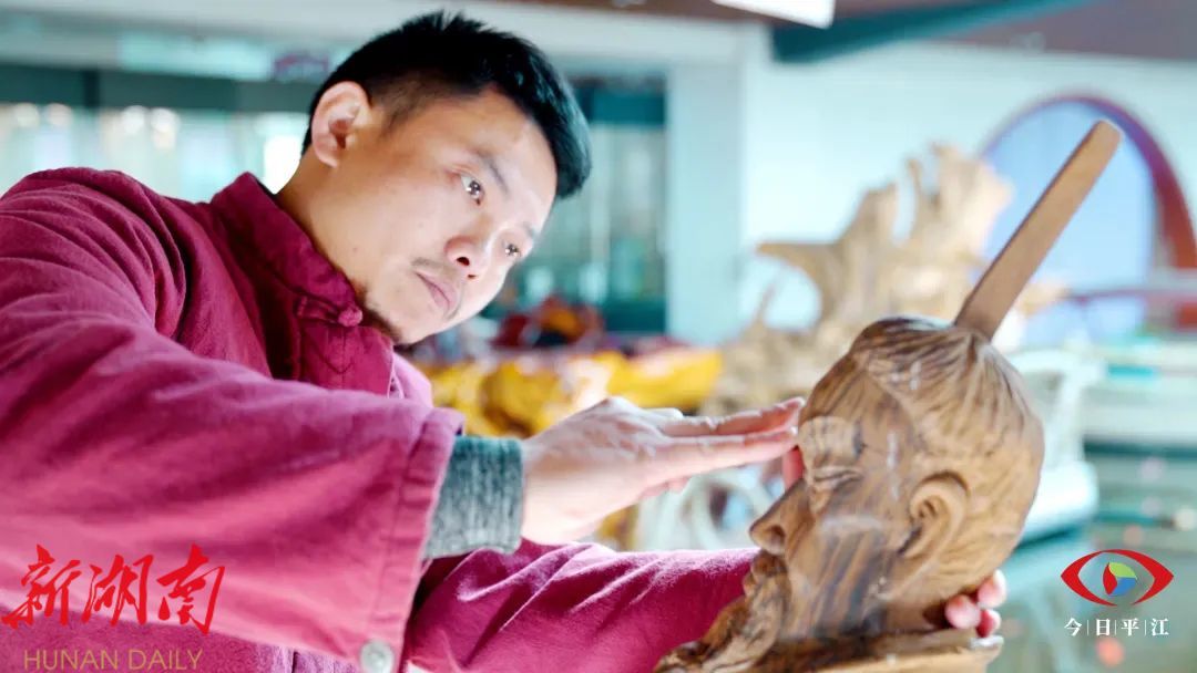 特点:平江木雕以细腻的雕刻技艺闻名,题材多取自民间故事、神话传说和自然景物,具有浓郁的地方特色。 现状:木雕技艺通过非遗保护和现代设计相结合,逐渐走向市场,成为平江文化创意产业的重要组成部分。 7、平江九龙舞