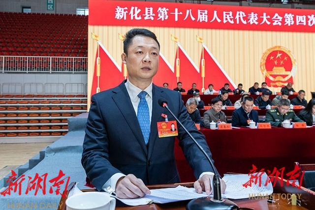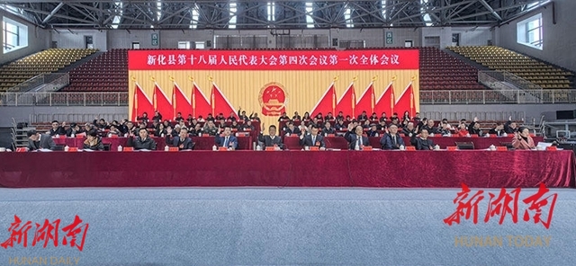 湖南日报·新湖南客户端2月19日讯(通讯员陆明炬 游进 刘文 康爱军 曾湘涛 李晟豪 黎明明 刘俊涛)2月18日上午,新化县第十八届人民代表大会第四次会议在新化县体育中心开幕。娄底市人大常委会副主任、新化县委书记李铁雄出席会议,新化县委副书记、县长彭韬作政府工作报告,县人大常委会主任杨韶红主持会议。