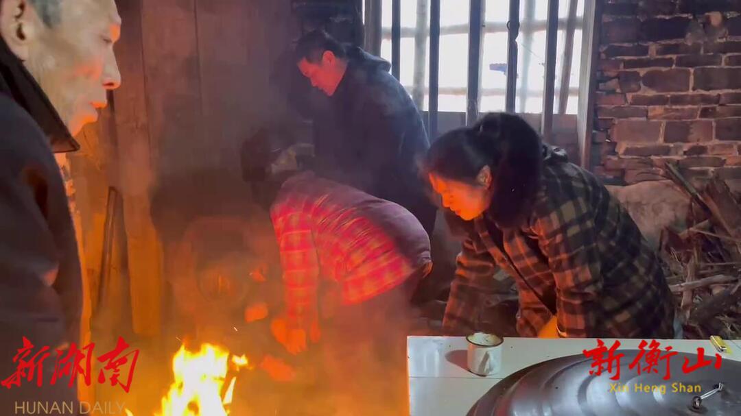 (众人给老人换衣服烧柴火暖身。源自村民视频截图。 )