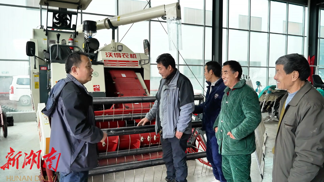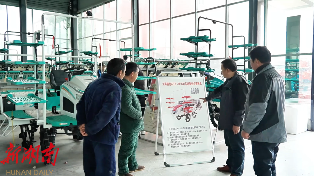 在邵阳万利农机销售服务有限责任公司展示厅内,各式各样的农机具排列整齐,从自动驾驶系统、智能化插秧机到拖拉机、收割机等一应俱全,满足了农户多样化需求。