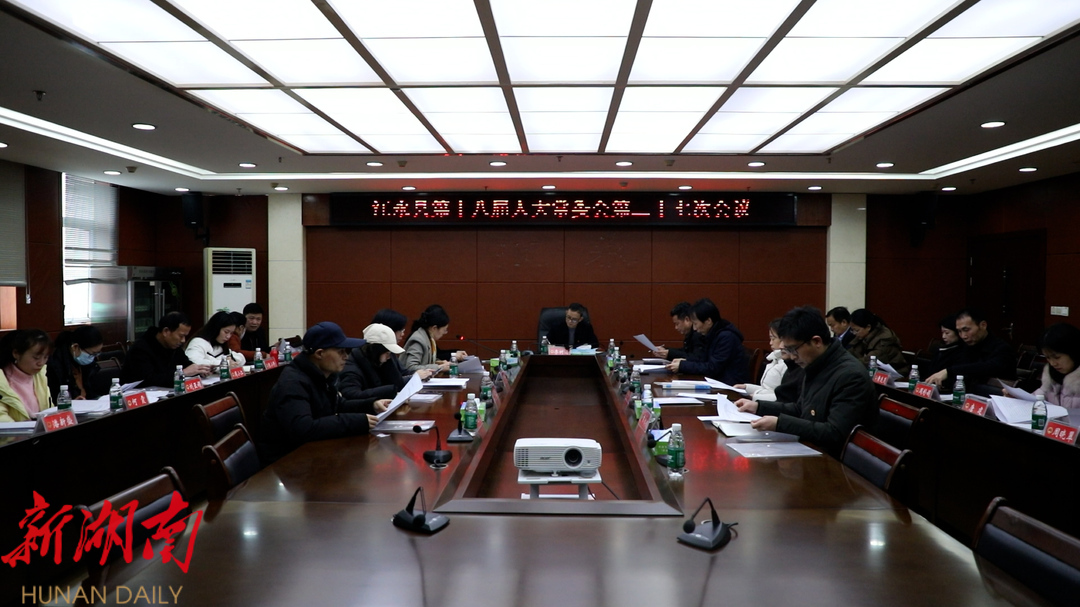 新江永客户端讯( 记者 蒋军 ) 2月17日,江永县第十八届人大常委会第二十七次会议召开。县人大常委会主任廖树清,县人大常委会副主任何爱光、欧阳萍、罗声军、宋飞云出席会议。