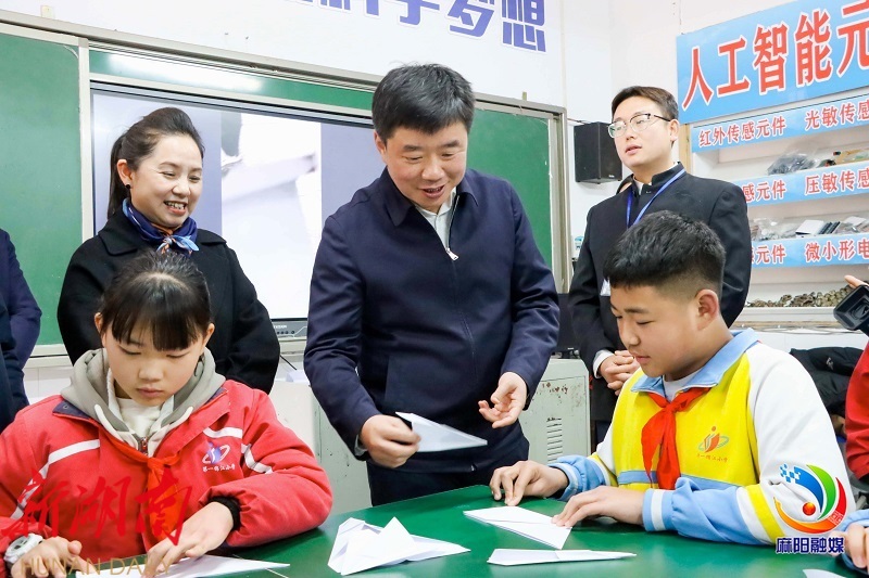 江涛首先来到麻阳第一锦江小学,详细了解学校的教育资源配置、师资队伍建设、特色课程开设以及科学教育成果成效等情况并召开座谈会,听取学校教育教学工作情况汇报。江涛对第一锦江小学在立德树人、校园文化建设、家校合作、科学教育等方面取得的成效给予了充分肯定。他强调,教育是国之大计、党之大计,要始终坚持立德树人根本任务不动摇,全面提升教育教学质量,努力办好人民满意的教育。科学教育是培养学生创新精神和实践能力的重要途径,要进一步加大对科学教育的投入,丰富科学教育资源,提升科学教育质量,培养更多具有创新精神和实践能力的优秀人才。
