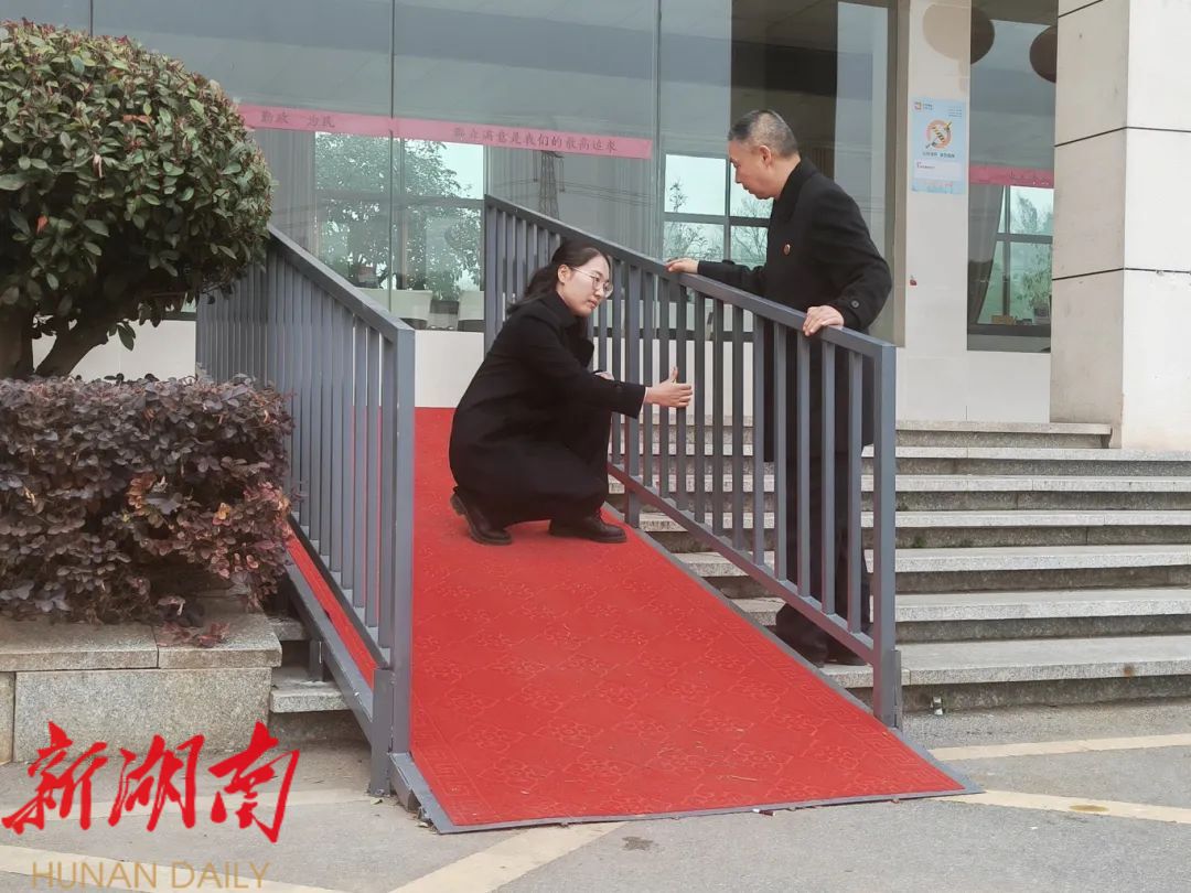 新湖南客户端2月20日讯 (通讯员 郑雨佳 杜姣姣 伍品倩 )“便民服务中心的人行台阶改为坡道,不用下轮椅,我就能进入大厅办事。”日前,衡阳县人民检察院检察官来到渣江镇,对无障碍环境建设专项整治开展“回头看”,坐在轮椅上的王先生对检察工作给予肯定。