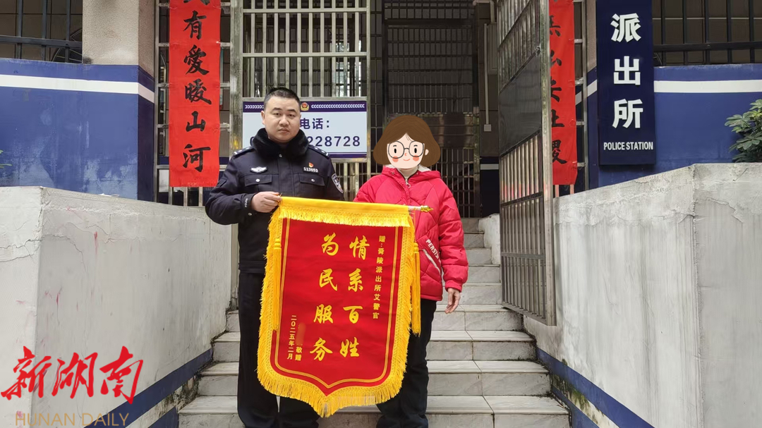 “真的太感谢你们了,警察同志,给你们添麻烦了!”“没关系,最重要的是孩子平安没事就行,回去以后,你们要注意关心孩子的情绪,加强沟通交流、陪伴关心,避免类似情况再度发生!”2月18日,杨女士将一面写有“情系百姓 为民服务”的锦旗送到了舜陵派出所民警手中,再三对民警表达感谢。民警则是叮嘱家长,要在日常生活中加强对孩子的关怀教育,引导孩子健康、快乐学习成长。
