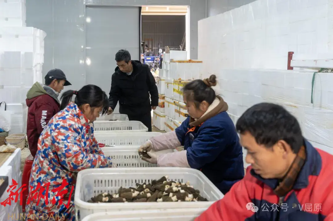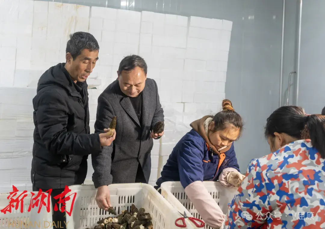 朱运伍这一大胆尝试获得了成功,目前基地内一亩羊肚菌投入的成本预计在12000元左右,一亩产量大概500—800斤,每亩纯利润达到10000元以上。新鲜采摘下来的羊肚菌会一部分暂时存放在专用的冷库等待打包,另一部分放到烘干机里做成更方便储存和运输的干货。有了好产品还要找好销路,朱运伍开始尝试与电商平台合作,让屈原羊肚菌进入更多人的餐桌。今年羊肚菌的丰收让朱运伍信心满满,“目前鲜羊肚菌主要销往长沙、武汉、上海、福州等地,销售情况基本上是供不应求。现在我又在尝试新品种,争取让这个大棚一年四季都能利用起来。”